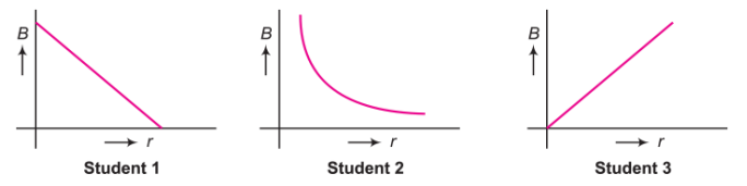 Three students represent the variation of magnetic field B with distance r for a straight infinity long current carrying conductor as